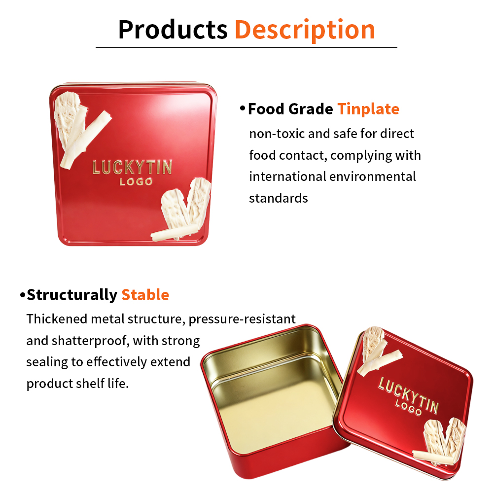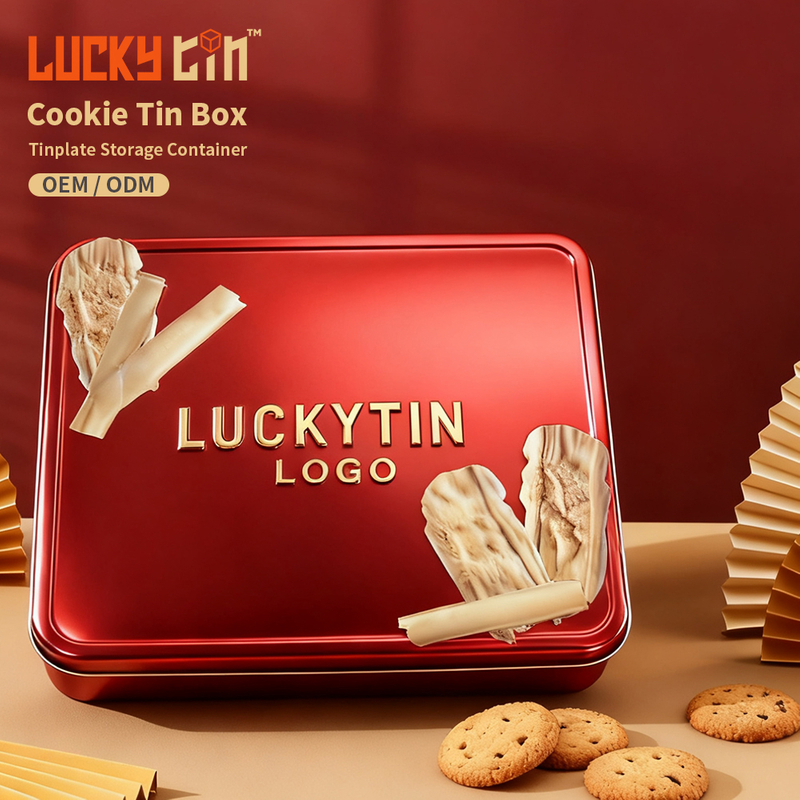 Cans Factory Tinplate Storage Container Rectangle Shape Biscuit Metal Can Empty Embossing Customized Cookie Tin Box for Cookies