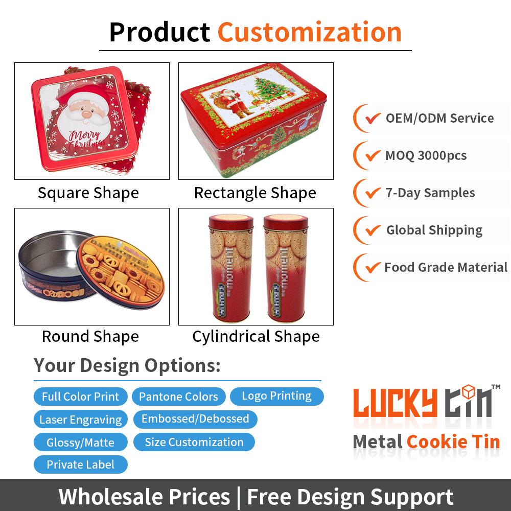 Factory Custom Tinplate Food Storage Container Metal Round Box Large Cookie Candy Self Sealing Tin Can For Christmas