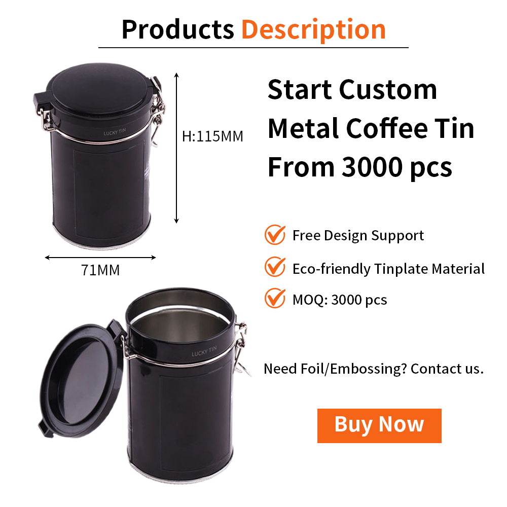 Custom Design Luxury Tinplate Canisters Empty Cylinder Coffee Bean Metal Box Container Sealed Coffee Tin Packaging for Coffee