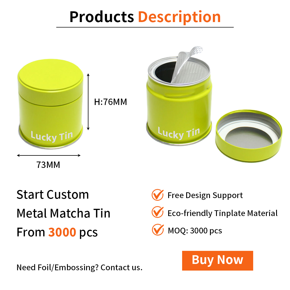 Factory Direct Deal Custom Airtight Matcha Tea Tinplate Packaging 30g Metal Storage Container Empty Matcha Tin for Matcha