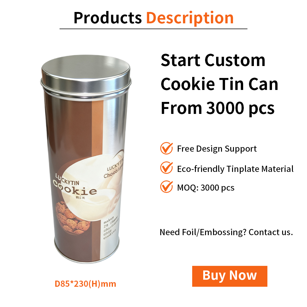 High Quality Custom Cylinder Emboss Cookie Tin Can Box for Biscuit Packaging Metal Cans Food Grade Storage Cookie Tins