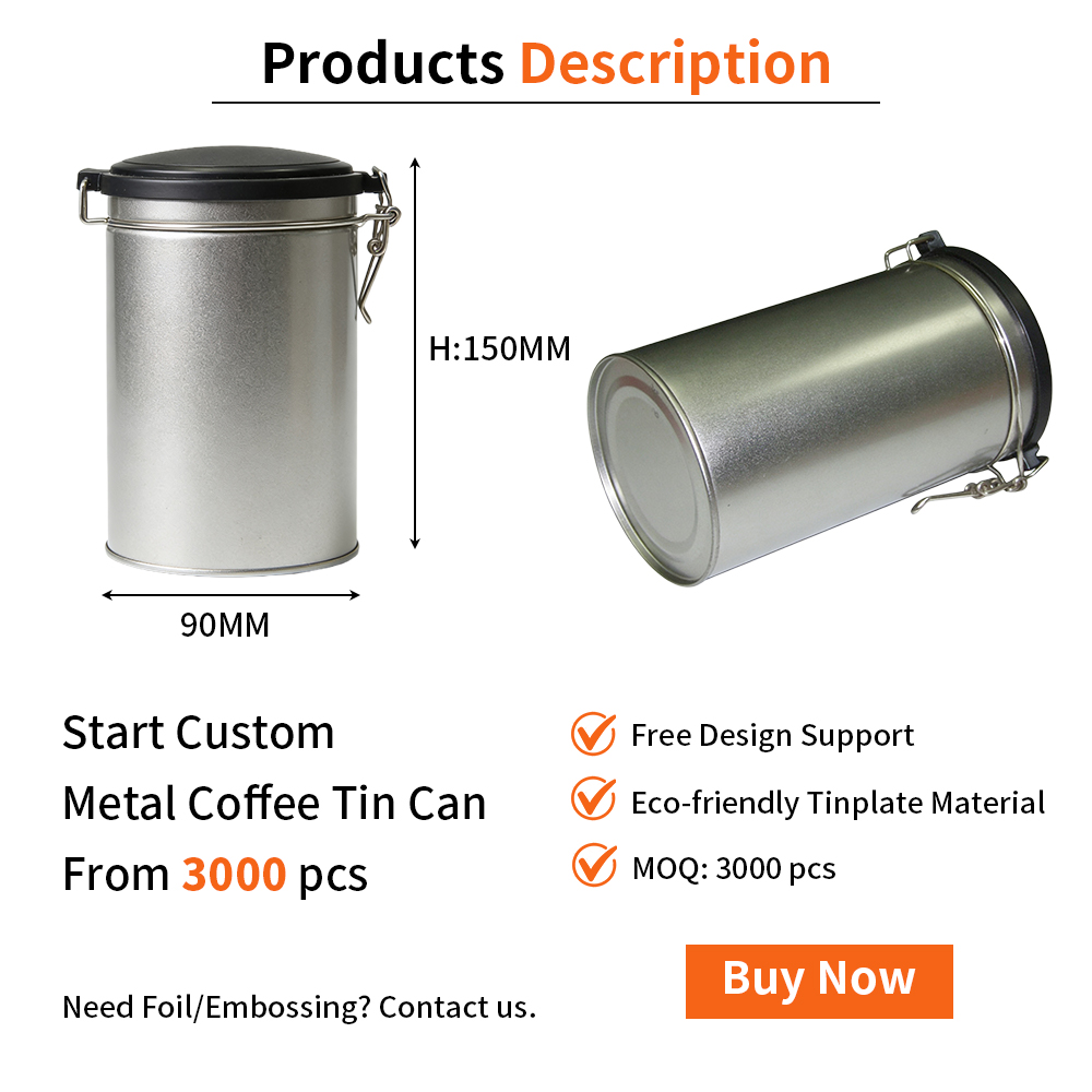 Manufacturer Wholesale Tinplate Storage Container Coffee Beans Metal Packaging Cylinder Coffee Tin Custom With Airtight Lid
