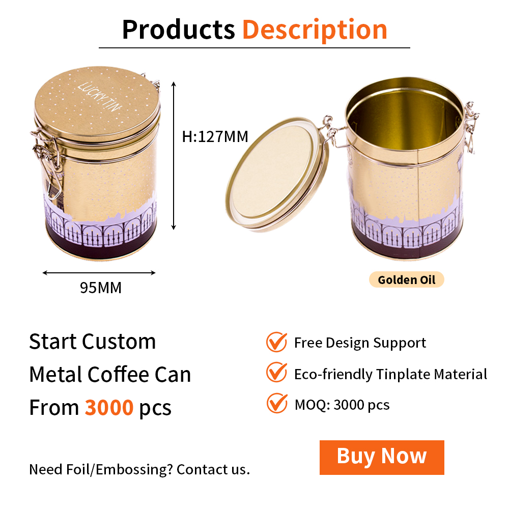 Manufacturers Custom Golden Tinplate Box Packaging Cylinder Coffee Beans Tin Container Free Samples Metal Coffee Can With Valve