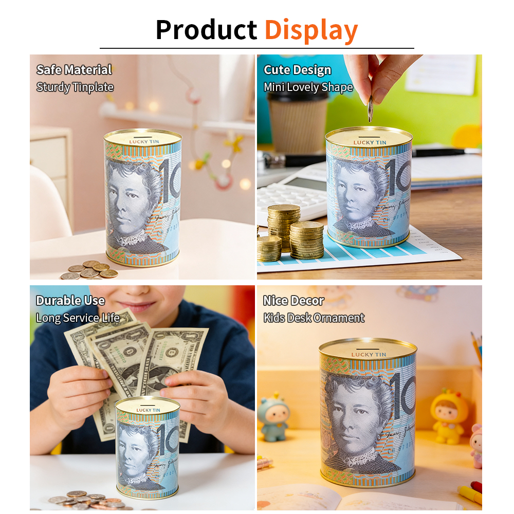 OEM ODM Custom Coin Saving Tinplate Storage Container Plain Money Metal Can Cylinder Tin Children's Piggy Bank