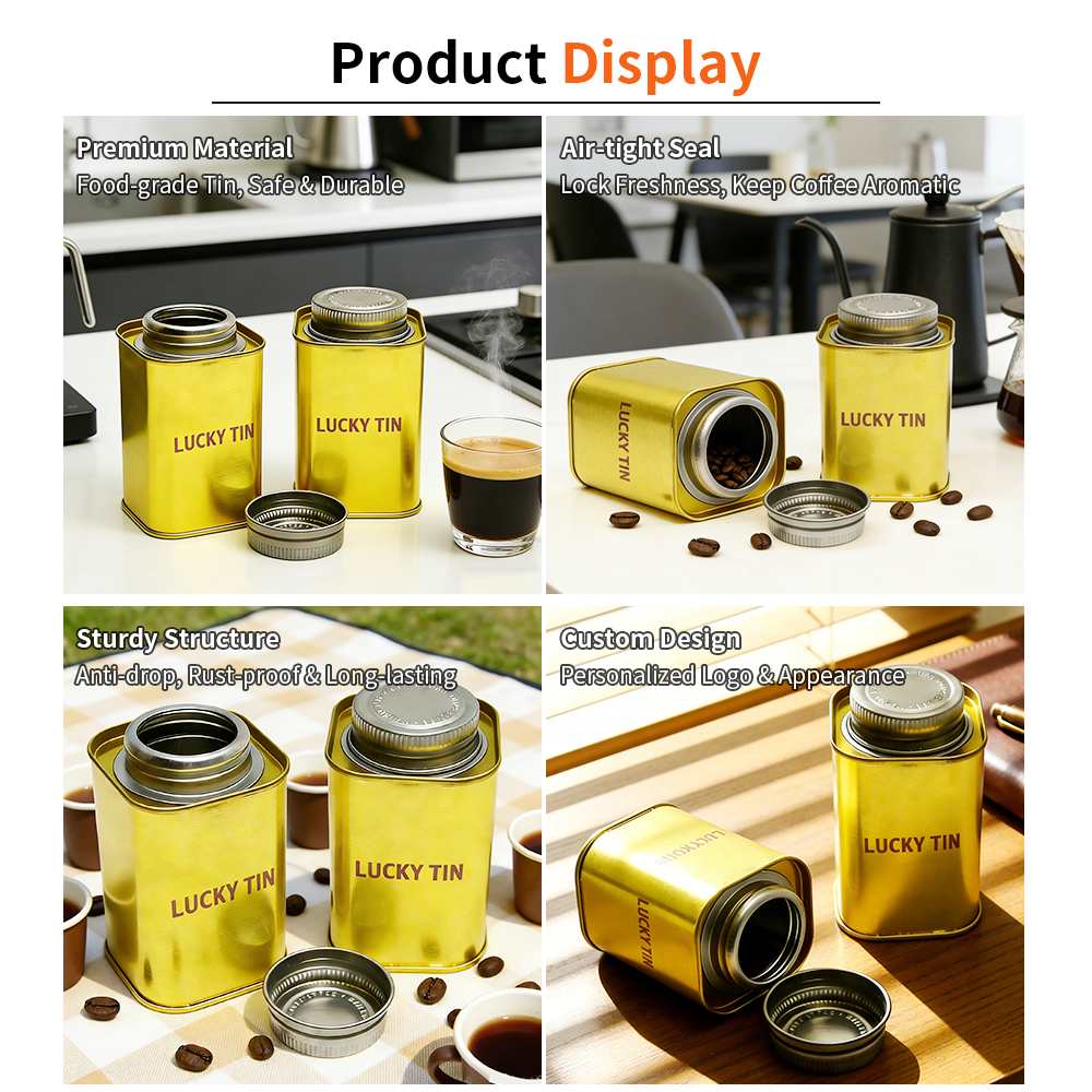 OEM ODM Manufacture Custom Tinplate Storage Container Metal Can Coffee Beans Easy Open Square Tin for Coffee With Screw Top