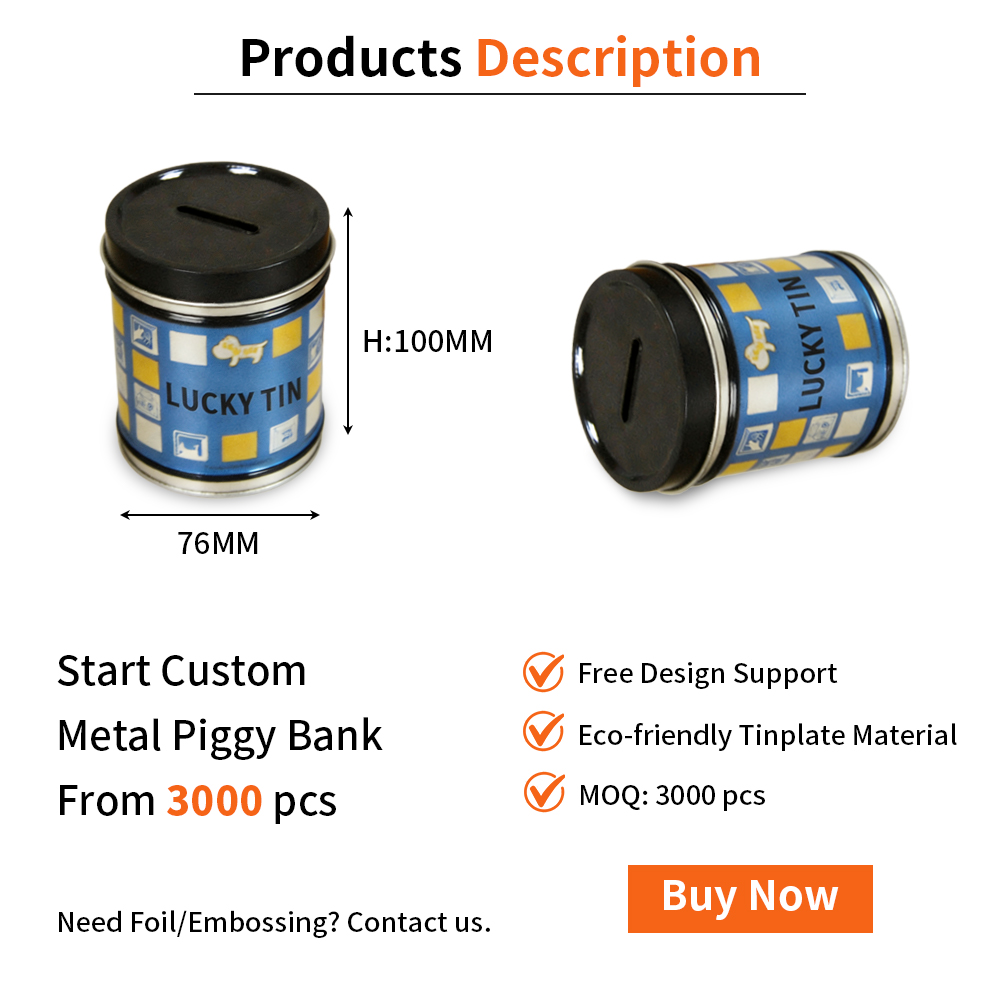OEM ODM Mint Tinplate Box Coins Storage Container Cylinder Shape Money Saving Tin High Quality Custom Can Metal Piggy Bank
