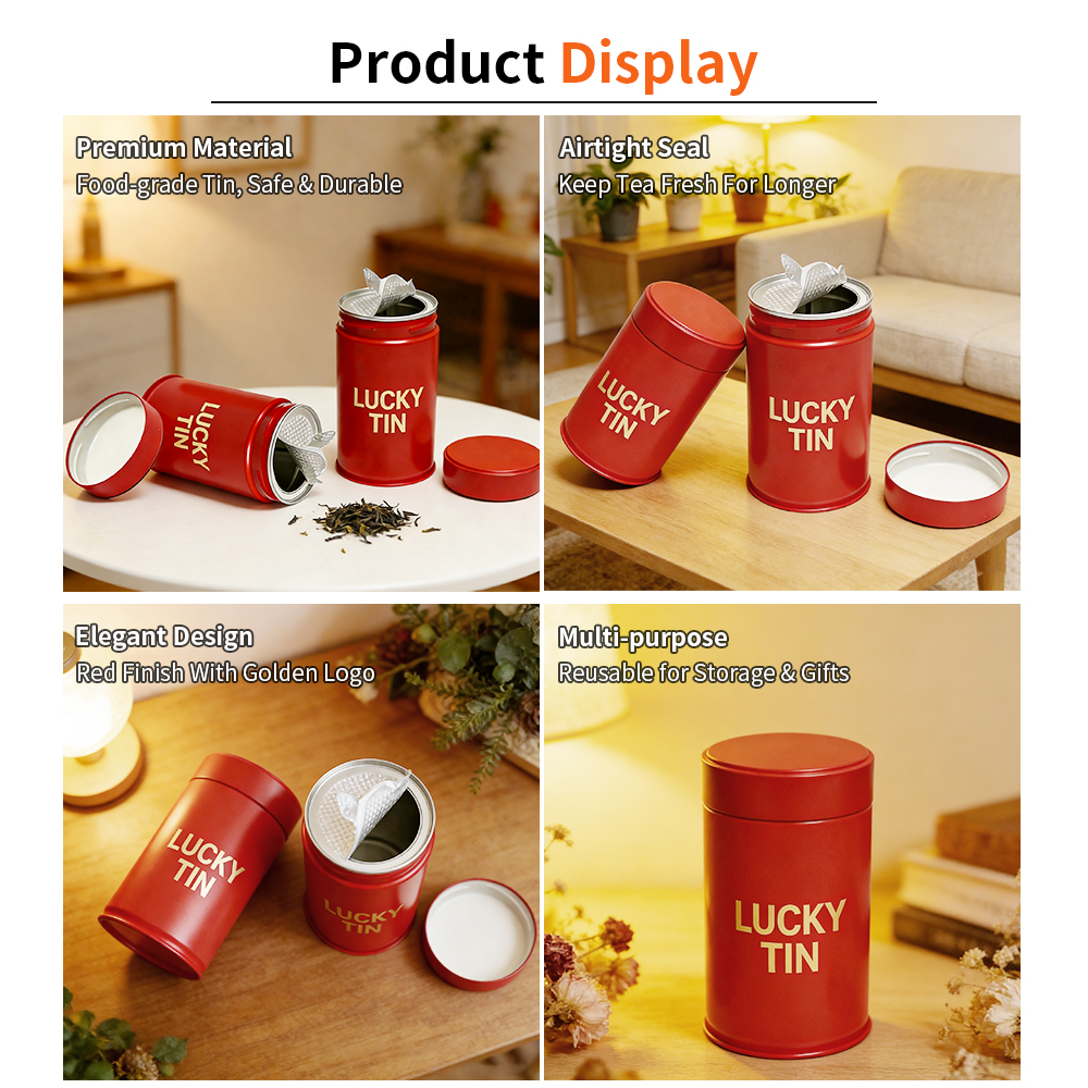 Original Factory Custom Tinplate Storage Container Packaging Cylinder Red Metal Can Empty Tea Tin With Inner Lid